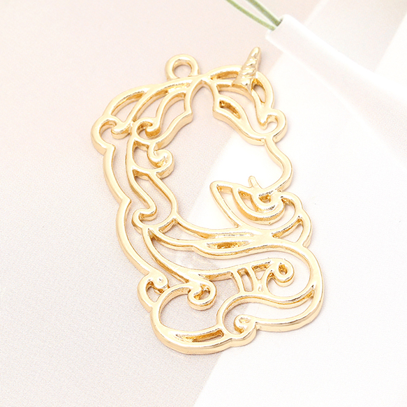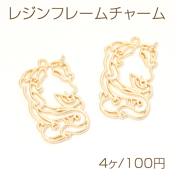 レジンフレームチャーム ユニコーン 1カン付き ゴールド 23×38mm(4ヶ)