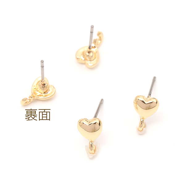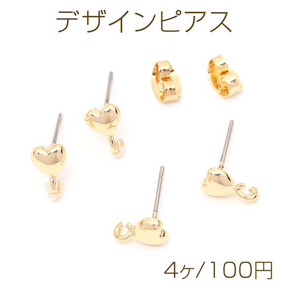 デザインピアス ハート型 1カン付き ゴールド 5×8mm(4ヶ)