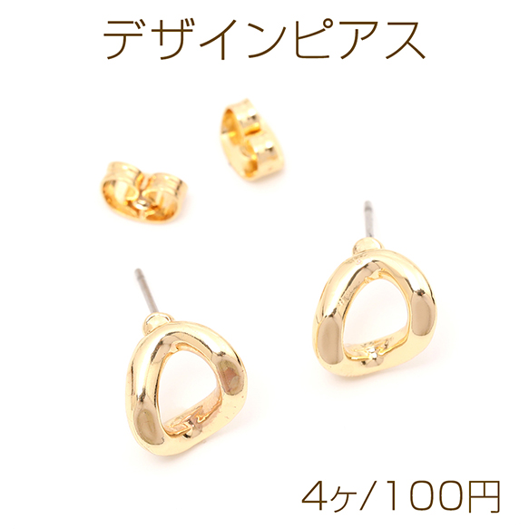 デザインピアス 不規則オーバルフレーム ゴールド 9×11mm(4ヶ)
