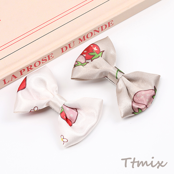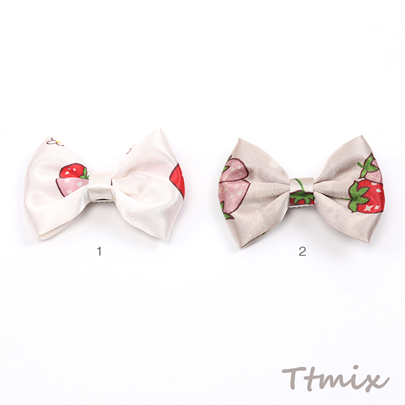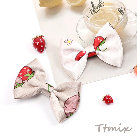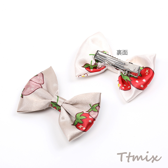 ヘアクリップ メタルクリップ いちご柄リボン ヘアアクセサリー いちごモチーフ 苺柄プリント