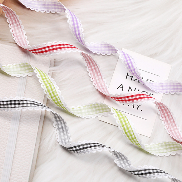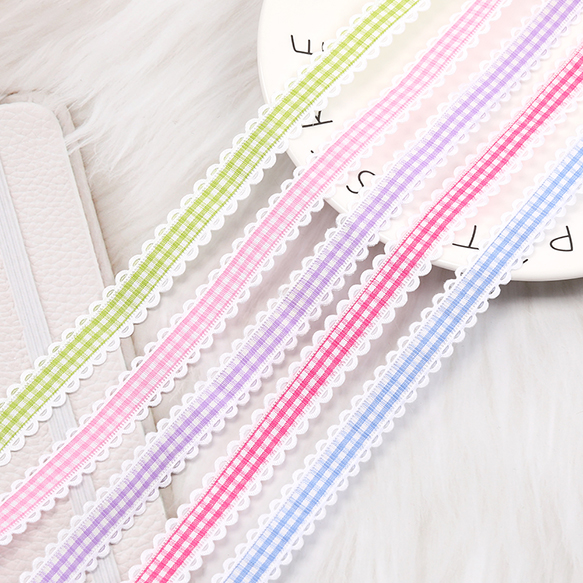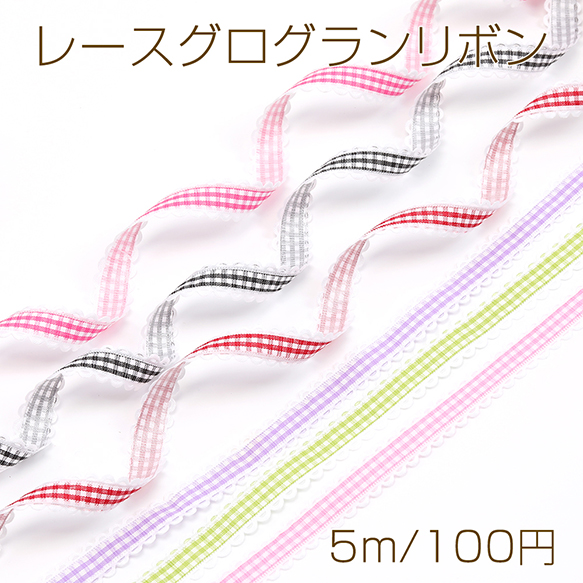 レースグログランリボン レースグログランテープ レースポリエステルリボン 無地 チェック柄 幅1.5cm 長さ5m