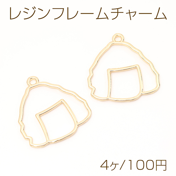 レジンフレームチャーム 焼きおにぎり 1カン付き ゴールド 29×31mm(4ヶ)