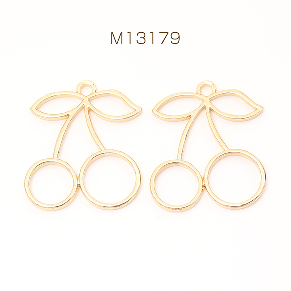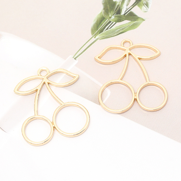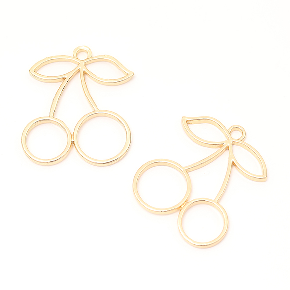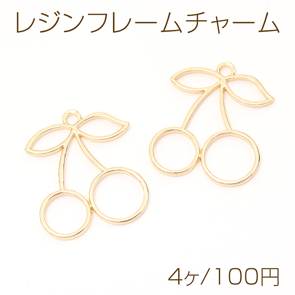 レジンフレームチャーム さくらんぼ チェリー 1カン付き ゴールド 27×32mm(4ヶ)