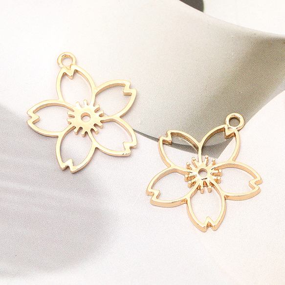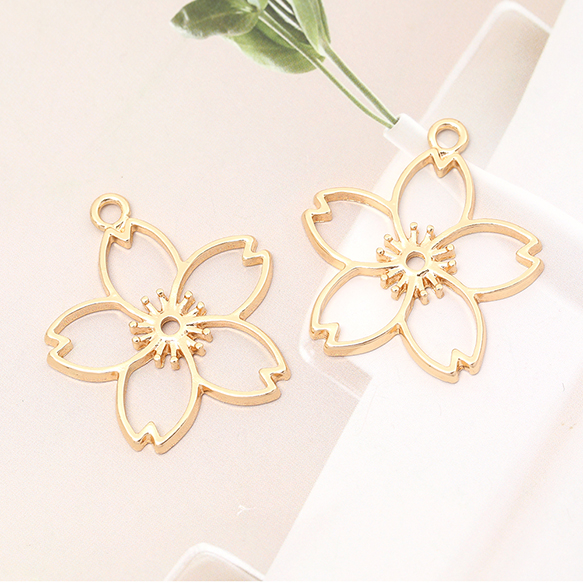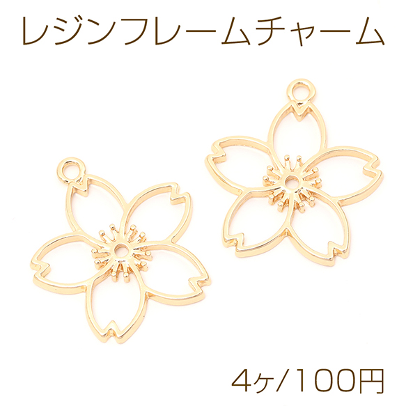 レジンフレームチャーム フラワー 花 さくら 桜 1カン付き ゴールド 32×35mm(4ヶ)