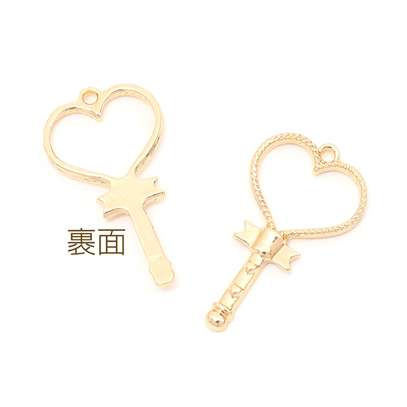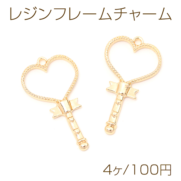 レジンフレームチャーム ハート型マジックスティック 1カン付き ゴールド 20×36mm(4ヶ)