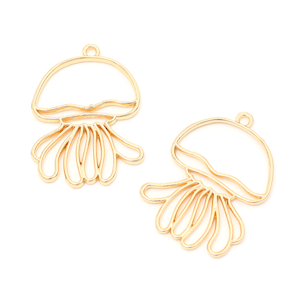 レジンフレームチャーム くらげ クラゲ 海の生き物 1カン付き ゴールド 26×36mm(4ヶ)