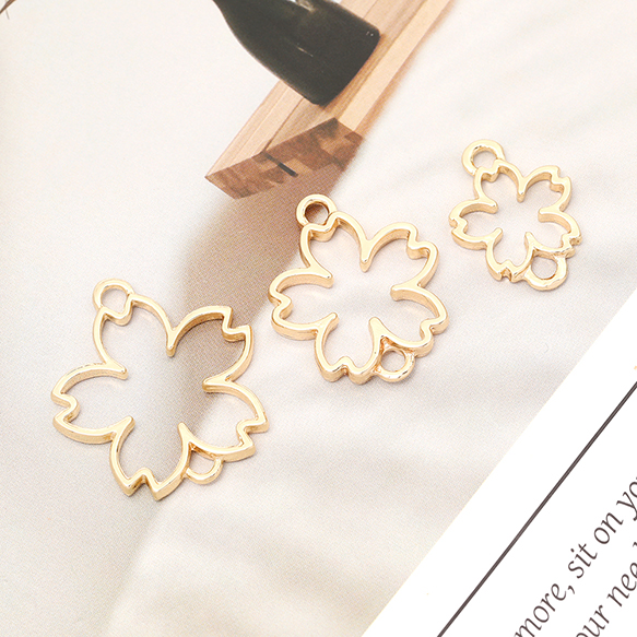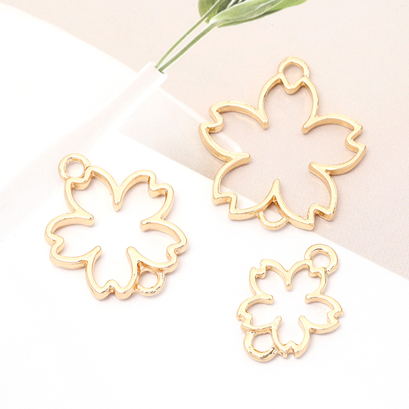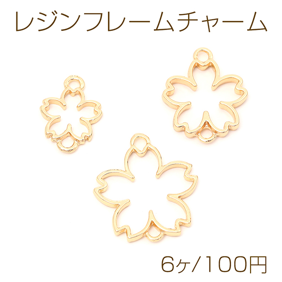 レジンフレームチャーム メタルコネクターチャーム 繋ぎパーツ 接続パーツ 連結パーツ フラワー 花 さくら 桜 上下2カン付き 2カン付き ゴールド