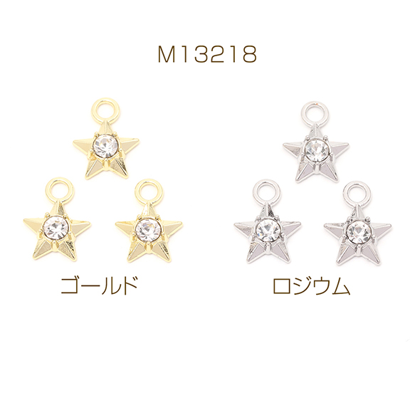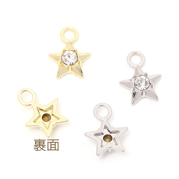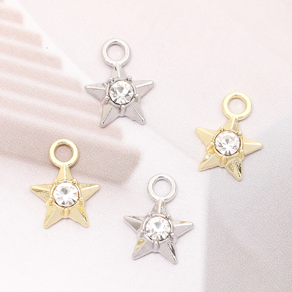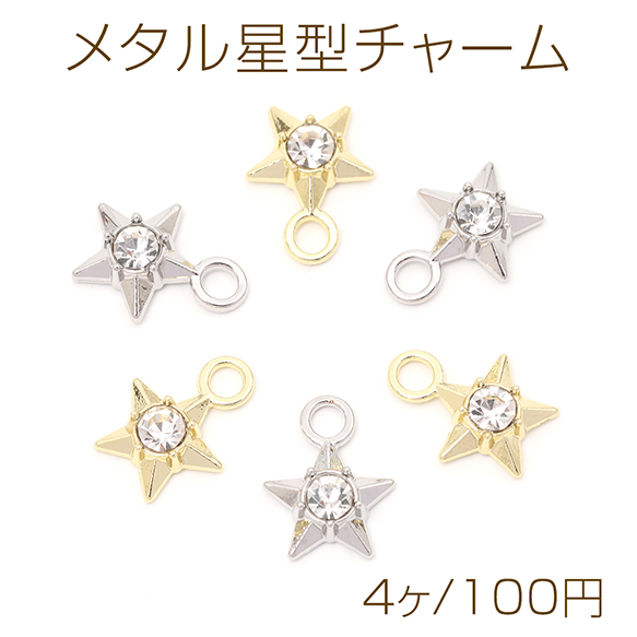 メタル星型チャーム メタルチャーム 星形 星型 スター ラインストーン付き 1カン付き 11×14mm(4ヶ)