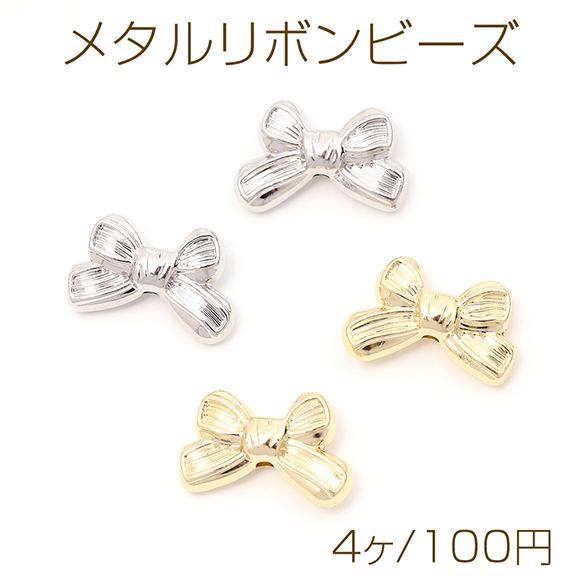 メタルリボンビーズ メタルビーズ リボン型 通し穴あり 縦穴 10×16mm(4ヶ)