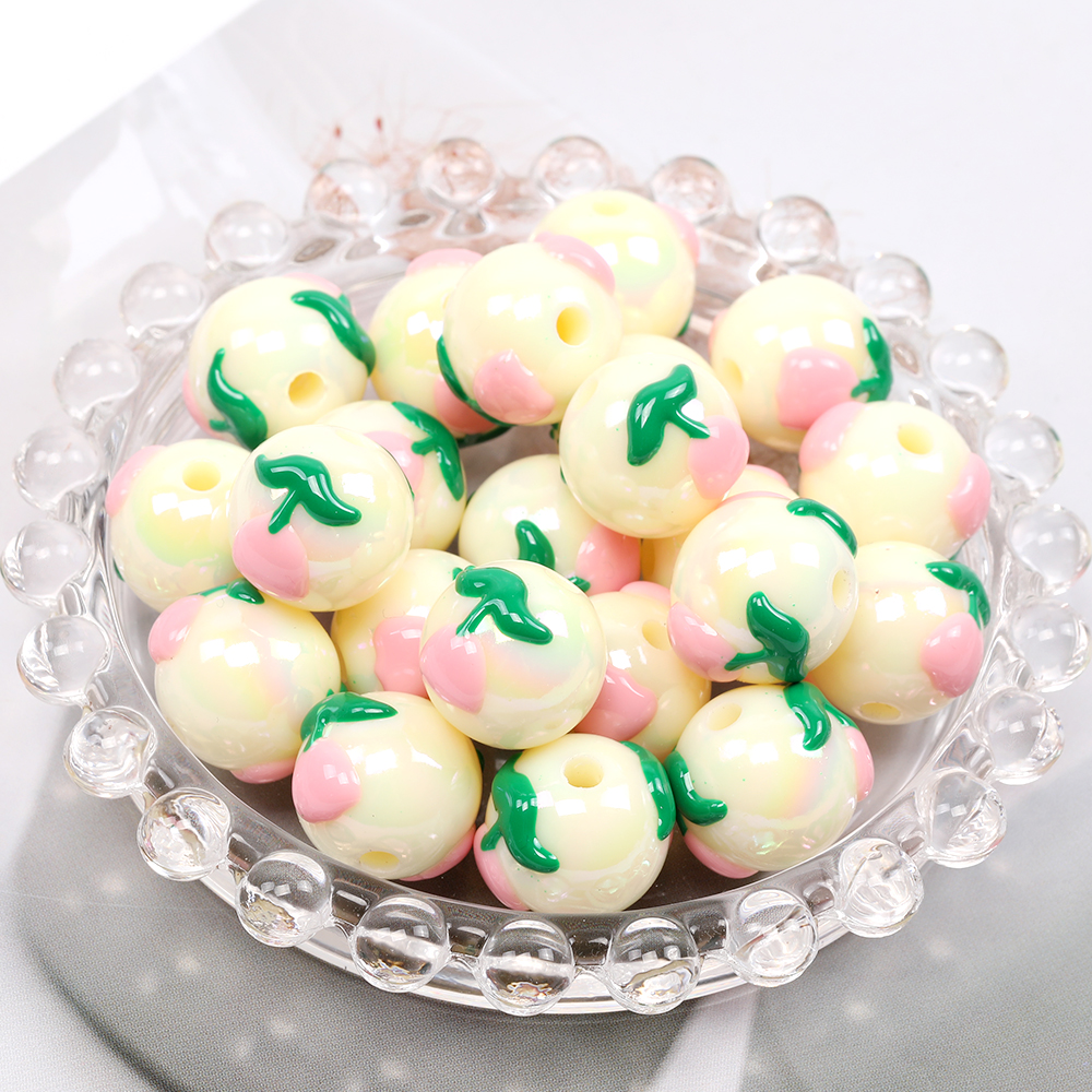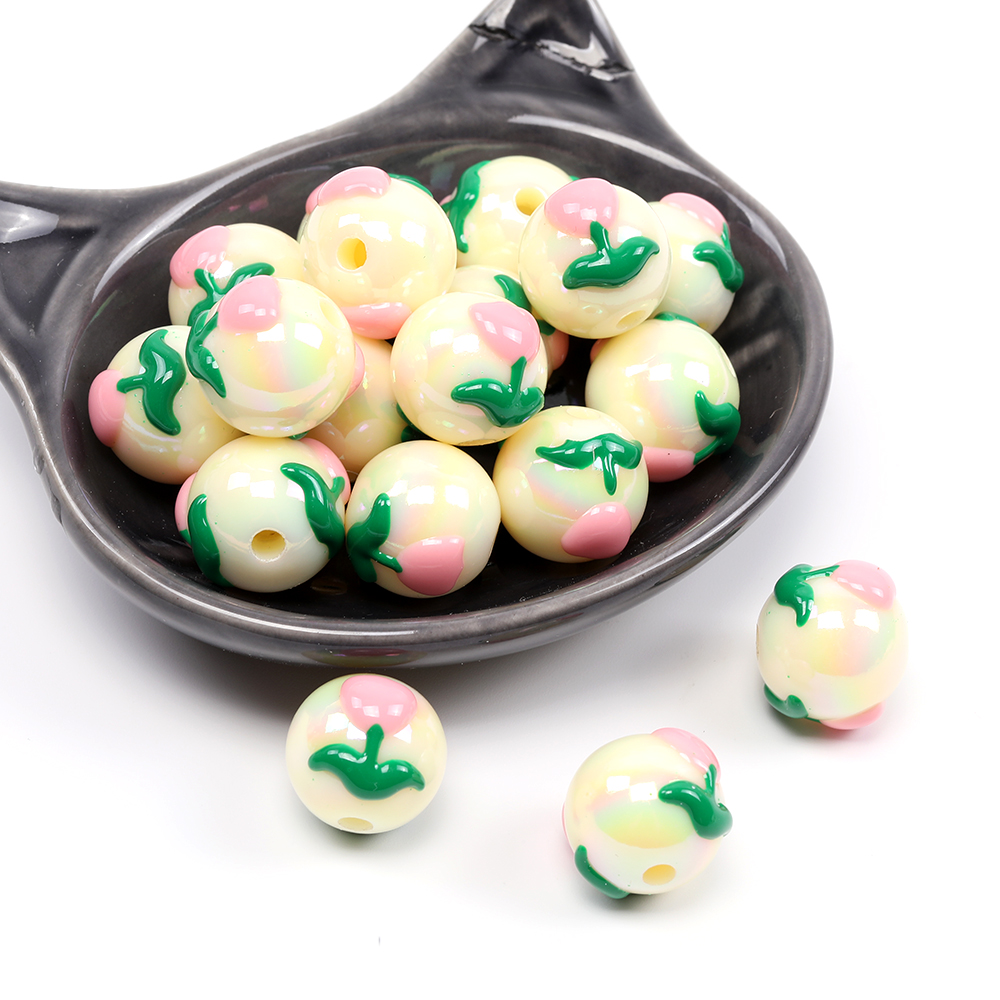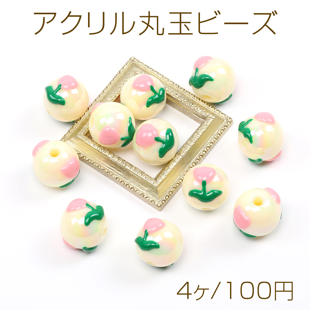 アクリル丸玉ビーズ 手描きアクリルビーズ 丸玉 ラウンド 円形 丸型 通し穴あり 縦穴 フラワー装飾 花装飾 フラワー付き 花付き 16mm(4ヶ)
