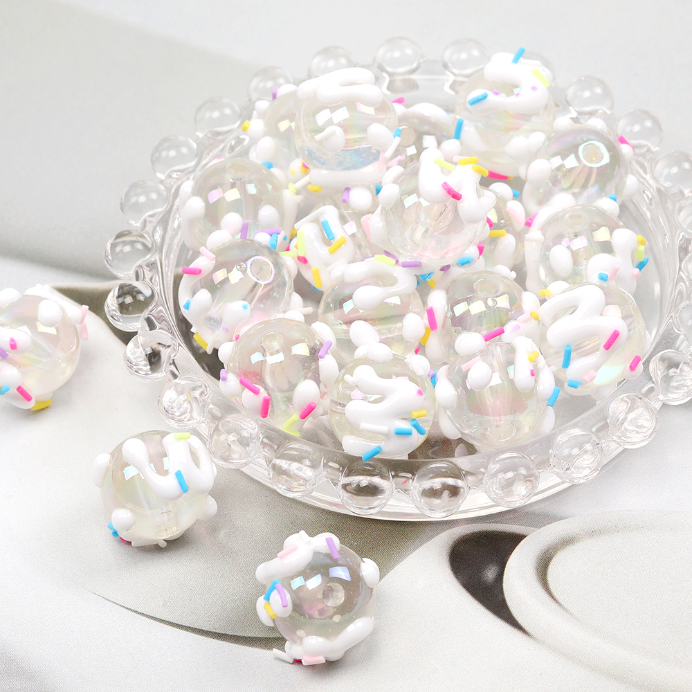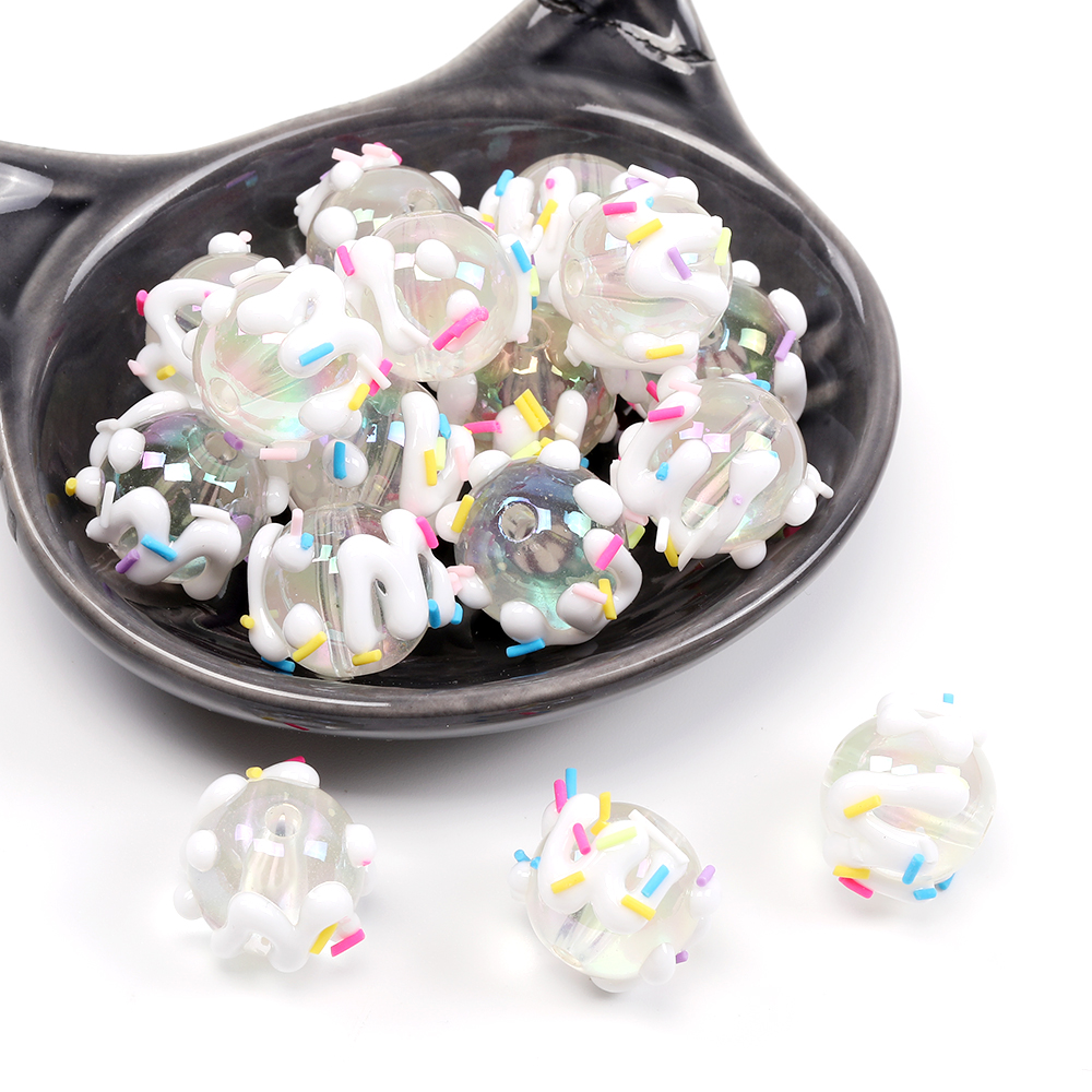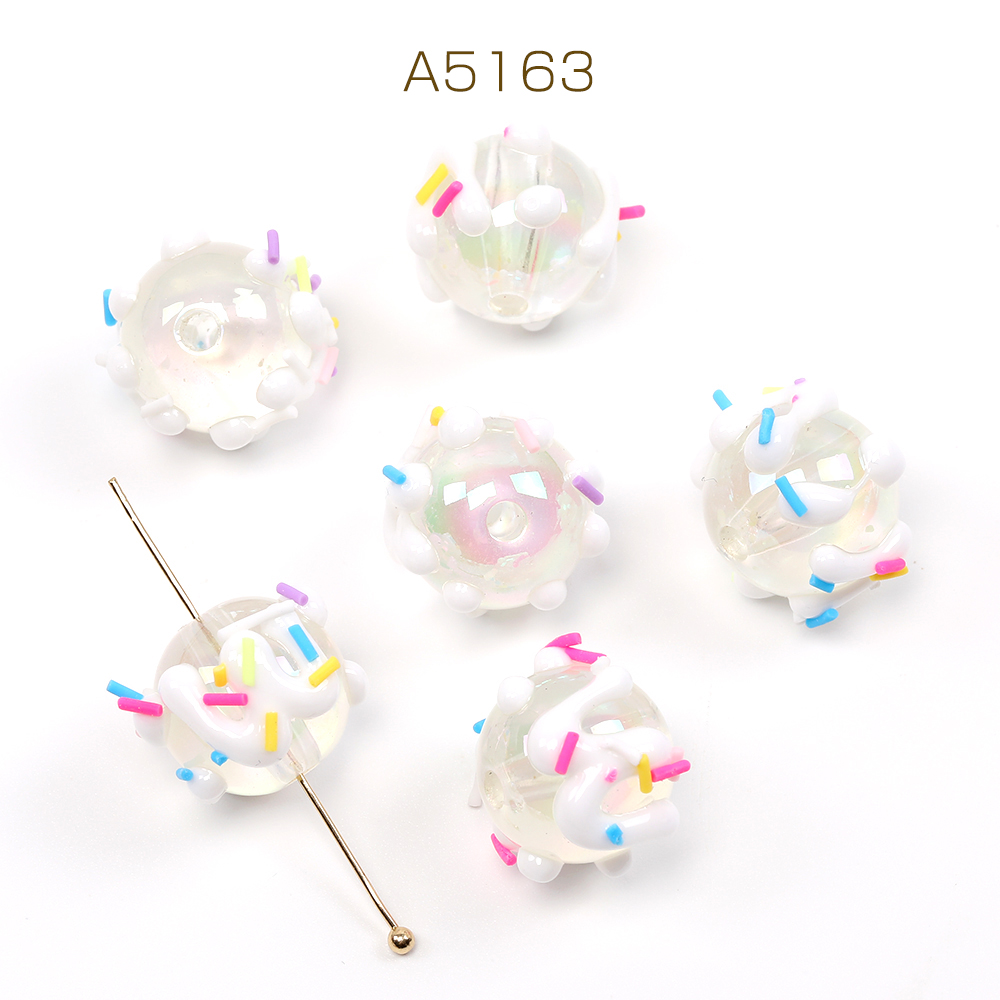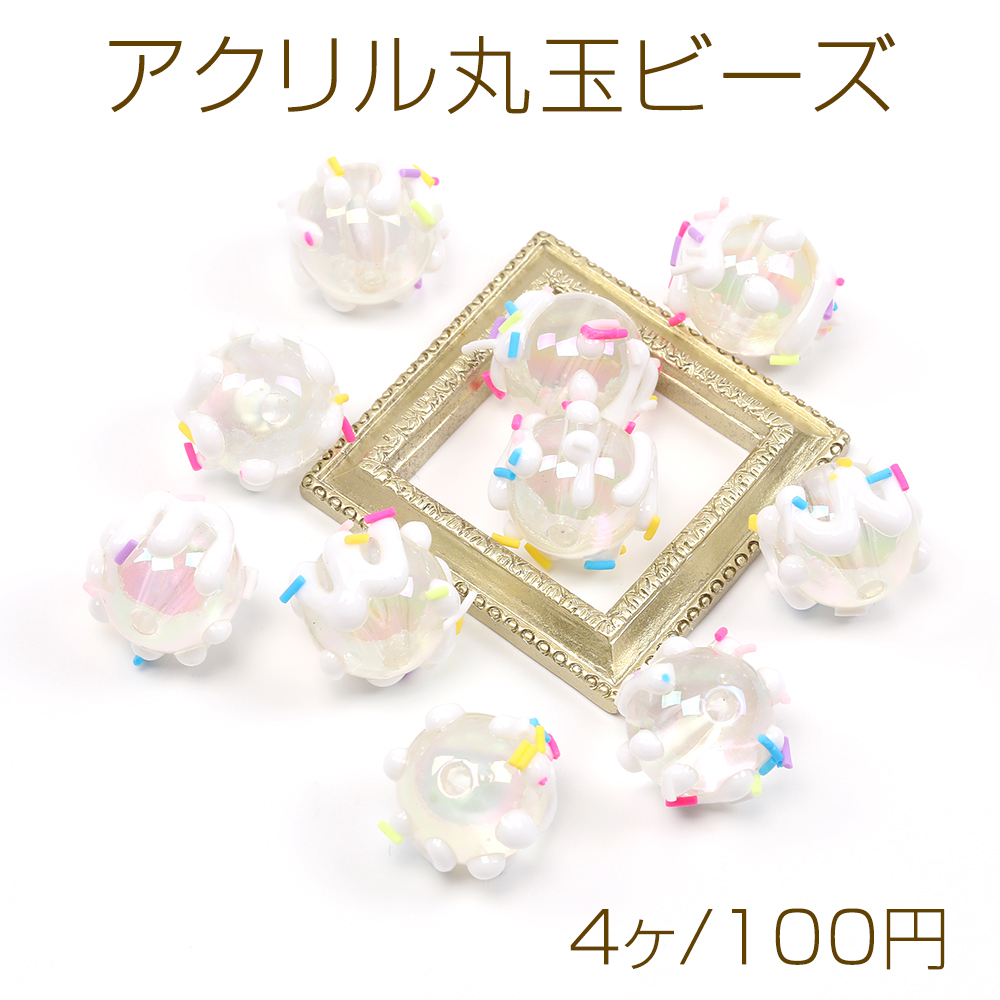 アクリル丸玉ビーズ 手描きアクリルビーズ 丸玉 ラウンド 円形 丸型 通し穴あり 縦穴 16mm(4ヶ)