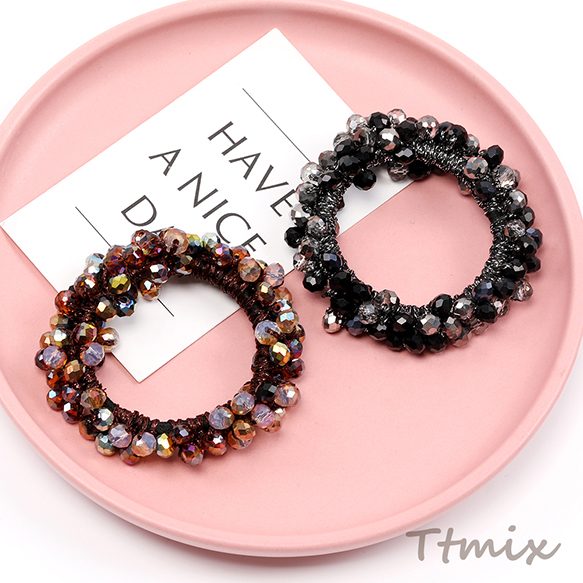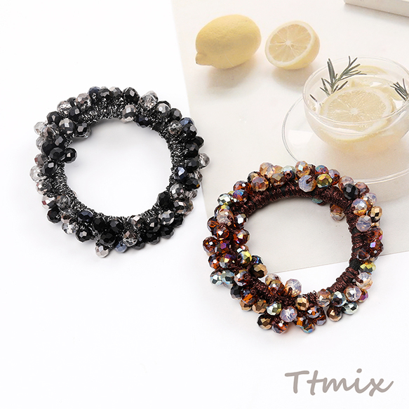 シュシュ ガラスビーズシュシュ ヘアアクセサリー