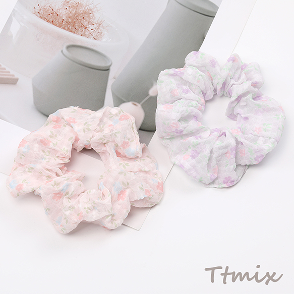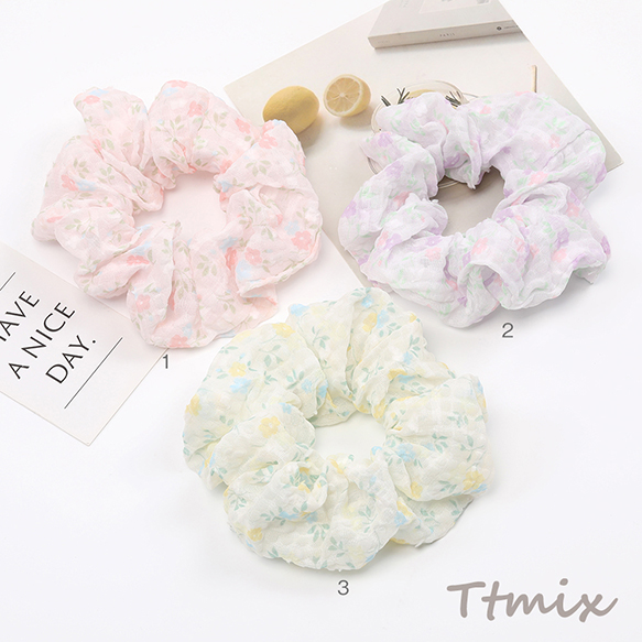 シュシュ フラワー柄シュシュ フラワーモチーフシュシュ 花柄プリントシュシュ ヘアアクセサリー