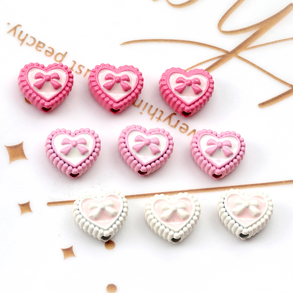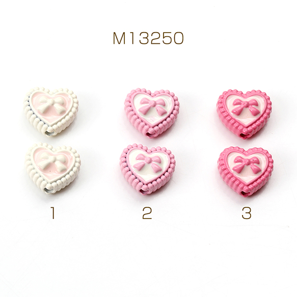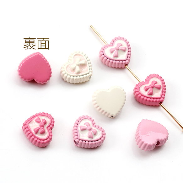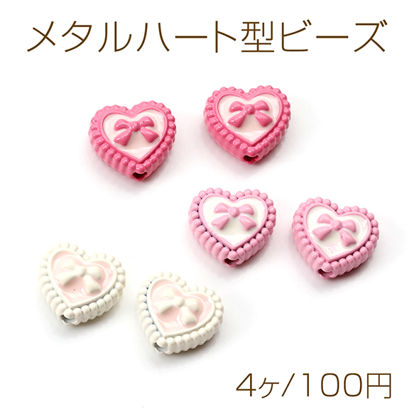 メタルハート型ビーズ リボン模様入り ハートモチーフメタルビーズ 塗装 通し穴あり 9×10mm