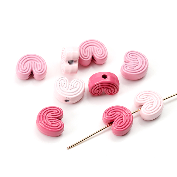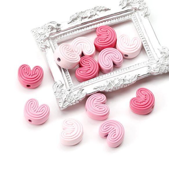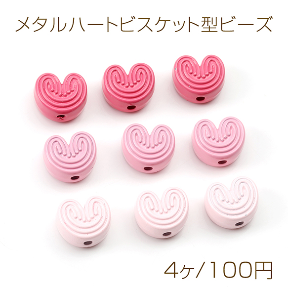 メタルハートビスケット型ビーズ ハートビスケットモチーフメタルビーズ 塗装 通し穴あり 8×10mm