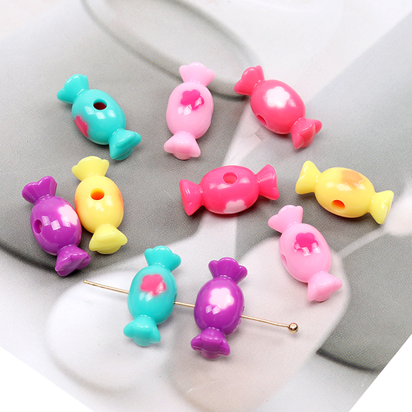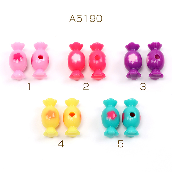アクリルキャンディー型ビーズ フラワー型模様入り キャンディーモチーフアクリルビーズ 五弁花の模様 通し穴あり 10×20mm