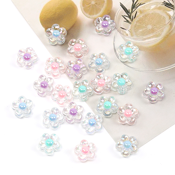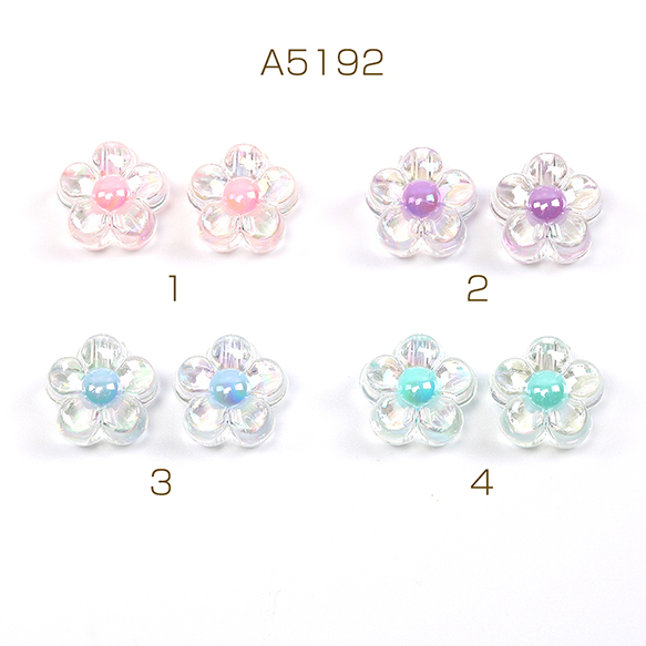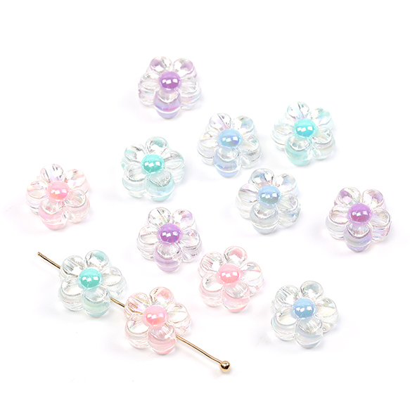 アクリルフラワー型ビーズ オーロラビーズ フラワーモチーフアクリルビーズ 五弁花 通し穴あり 12mm