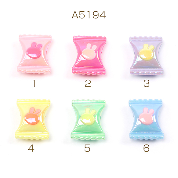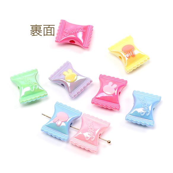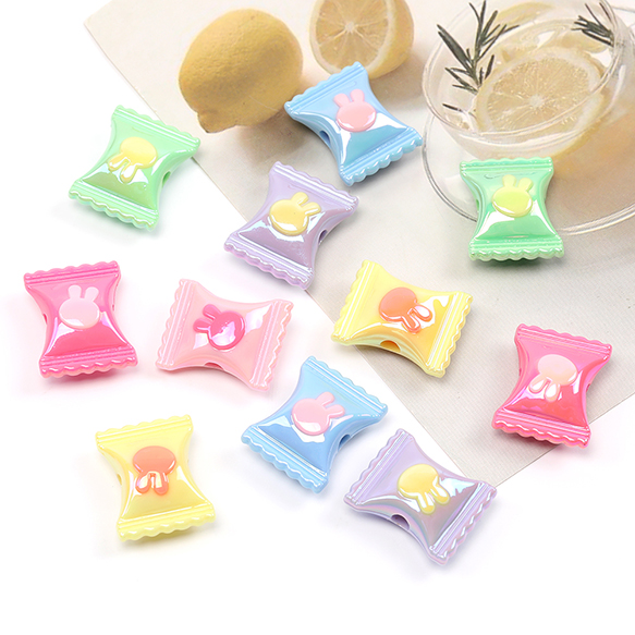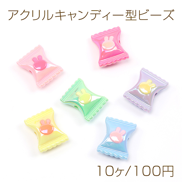 アクリルキャンディー型ビーズ 兎型模様入り キャンディーモチーフアクリルビーズ 通し穴あり 17×21mm