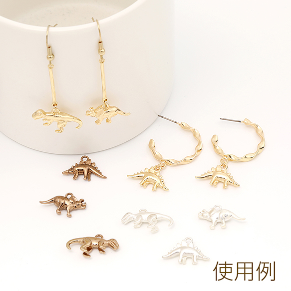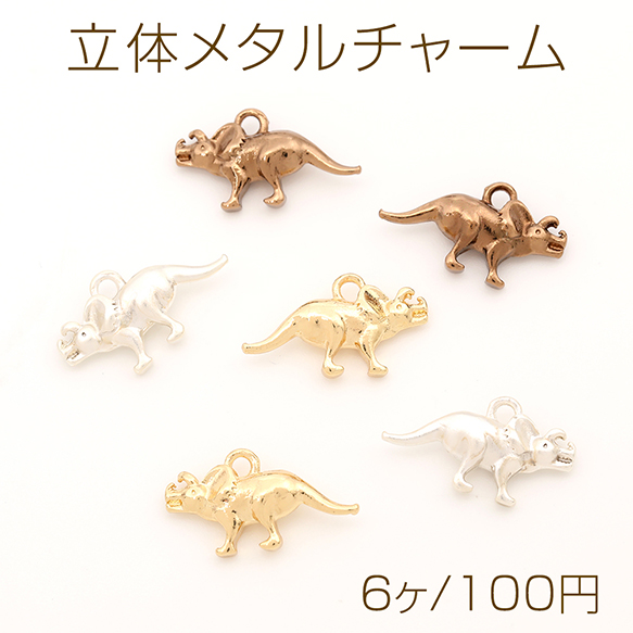 立体メタルチャーム 恐竜 1カン付き 11×20mm(6ヶ)