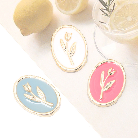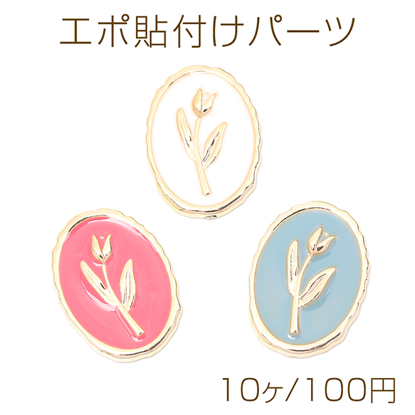 エポ貼付けパーツ アクリル製 フラワー模様入り エポプレートパーツ オーバル型 20×28mm
