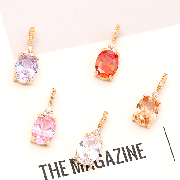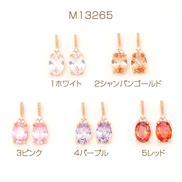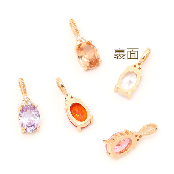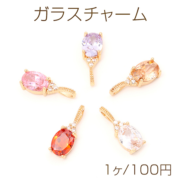 ガラスチャーム 台座付きガラスストーンチャーム ガラスストーンペンダントトップ オーバル型 1カン付き ゴールド 6×16mm(1ヶ)