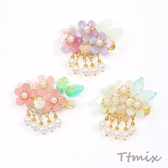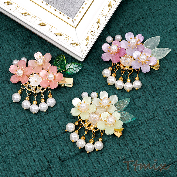 フラワーモチーフヘアクリップ ヘアアクセサリー レディースヘアクリップ 髪飾り フラワー 花 タッセル