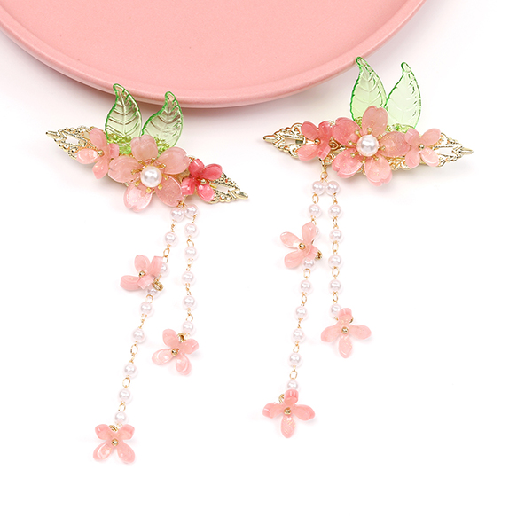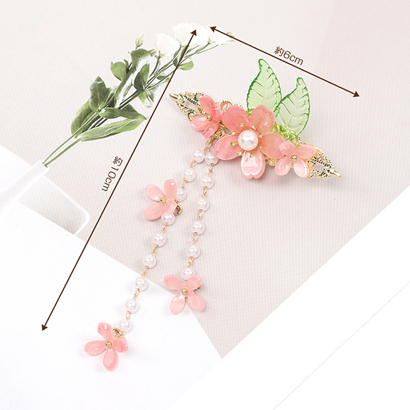 卸売フラワーモチーフヘアクリップ ヘアアクセサリー レディースヘアクリップ 髪飾り フラワー 花 チェーンタッセル