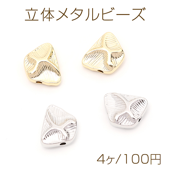 立体メタルビーズ 変形メタルビーズ メタリックビーズ 通し穴あり 10×14mm(4ヶ)
