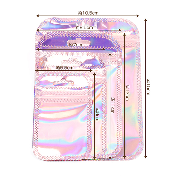 オーロラチャック袋 ラッピングポリ袋 ジュエリー袋 OPP袋 ビニール袋 クラフト包装袋 小物入れ袋 アクセサリー入れ ジプロック袋 穴あり オーロラカラー