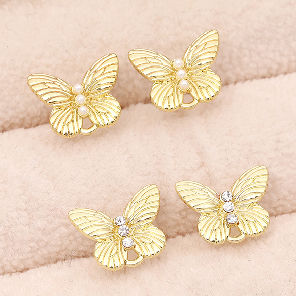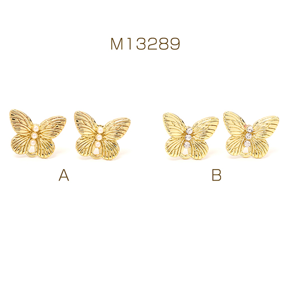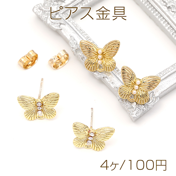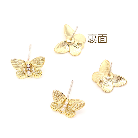 ピアス金具 リボン ピアスパーツ 蝶 パール ジルコニア ゴールド キャッチ付き 10×12mm (4ヶ)