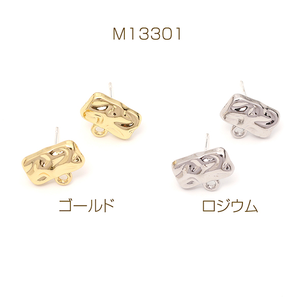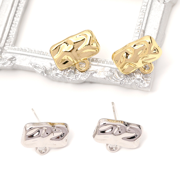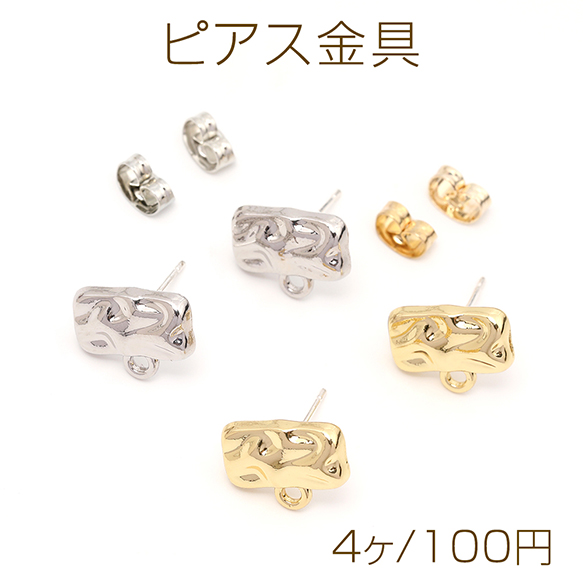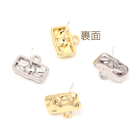 ピアス金具 デザインピアス 凹凸幾何学型 シルバーポスト 合金 ゴールド キャッチ付き 10×12mm (4ヶ)