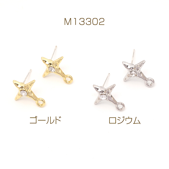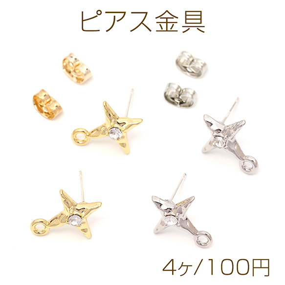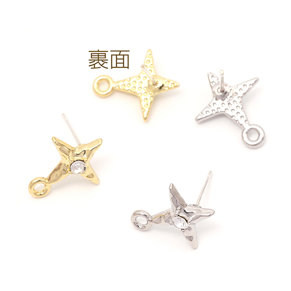 ピアス金具 デザインピアス 星ジルコニア付き シルバーポスト 合金 ゴールド 12×15mm キャッチ付き (4ヶ)