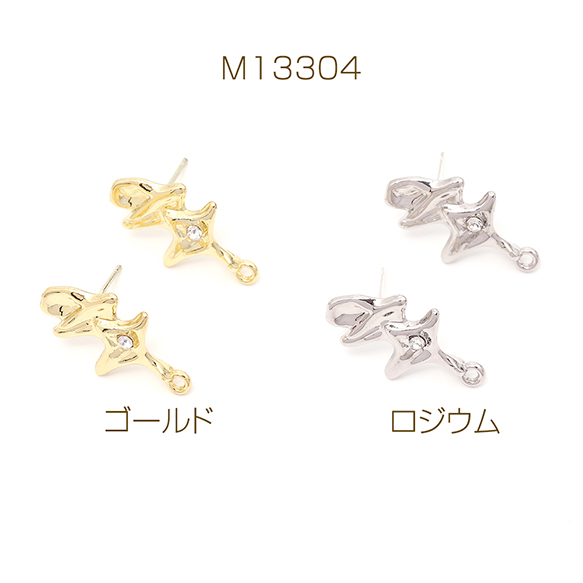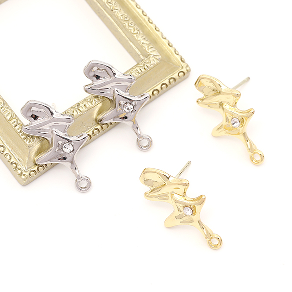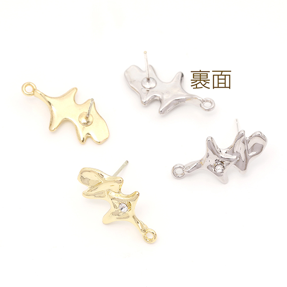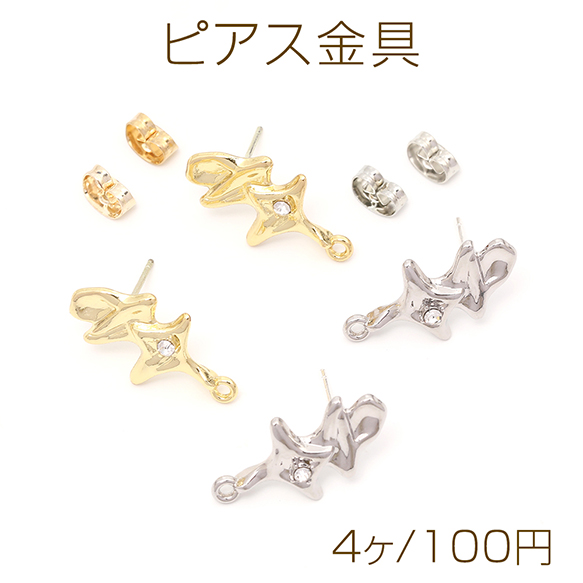 ピアス金具 デザインピアス 幾何学型 ジルコニア付き シルバーポスト 合金 ゴールド キャッチ付き 11×21mm (4ヶ)
