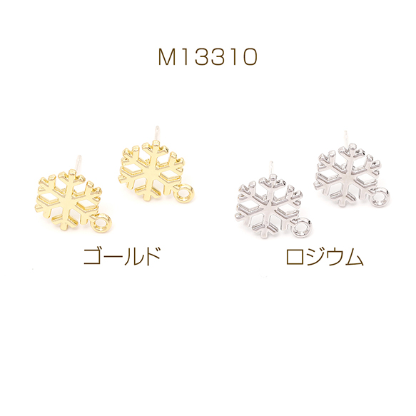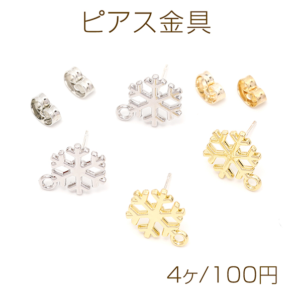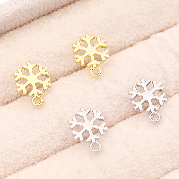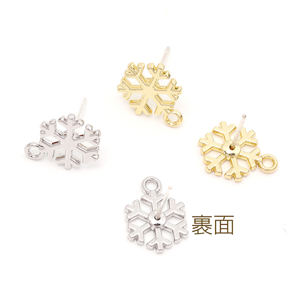 ピアス金具 デザインピアス 雪の結晶 カン付きキャッチ付き シルバーポスト 合金 ゴールド 10×14mm (4ヶ)