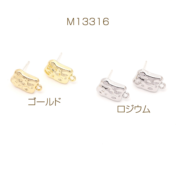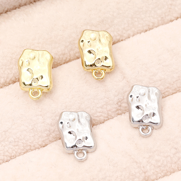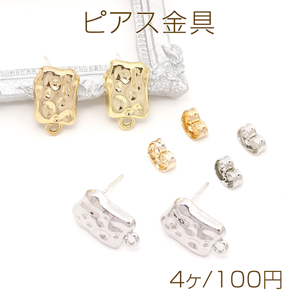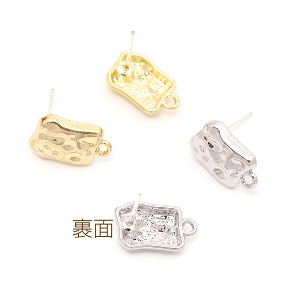 ピアス金具 デザインピアス 不規則四角型 カン付きキャッチ付き シルバーポスト 合金 ゴールド 9×14mm (4ヶ)