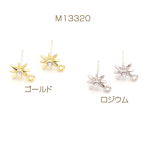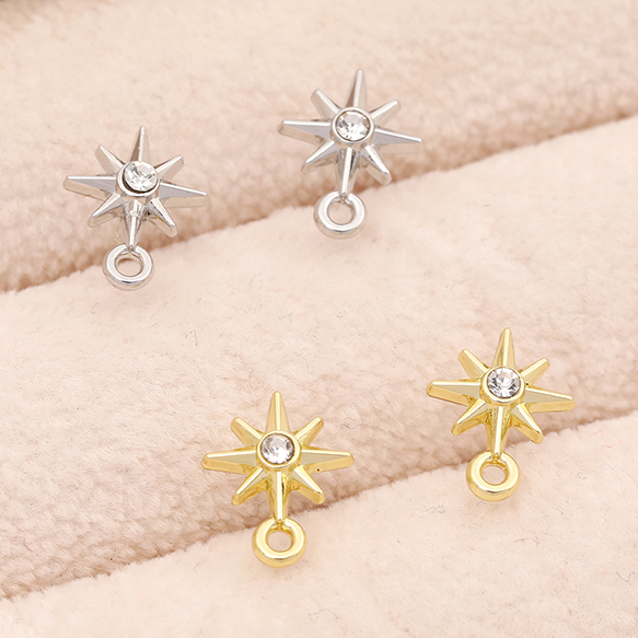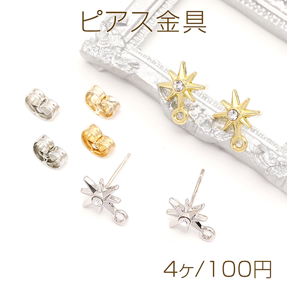 ピアス金具 デザインピアス ジルコニア カン付きキャッチ付き シルバーポスト 合金 ゴールド 9×11mm (4ヶ)