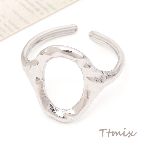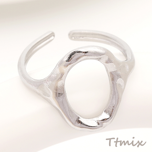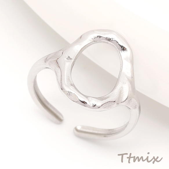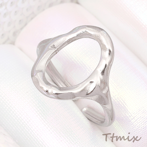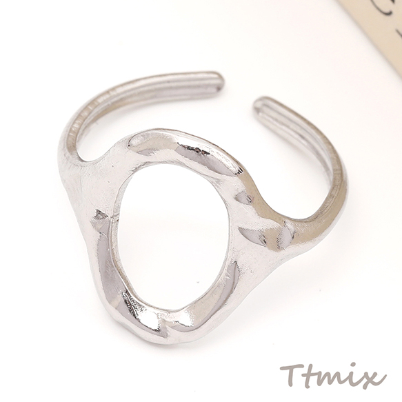ステンレスリング 指輪 色落ちしにくい オープンリング 楕円フレームモチーフ ファッションリング ステンレス製 内径約17.4mm 幅約17mm