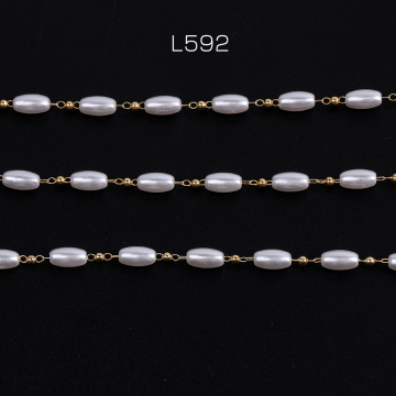 ハンドメイドチェーン パールビーズチェーン ハートフレームチェーン アクセサリーチェーン ネックレスチェーン (長さ1m)