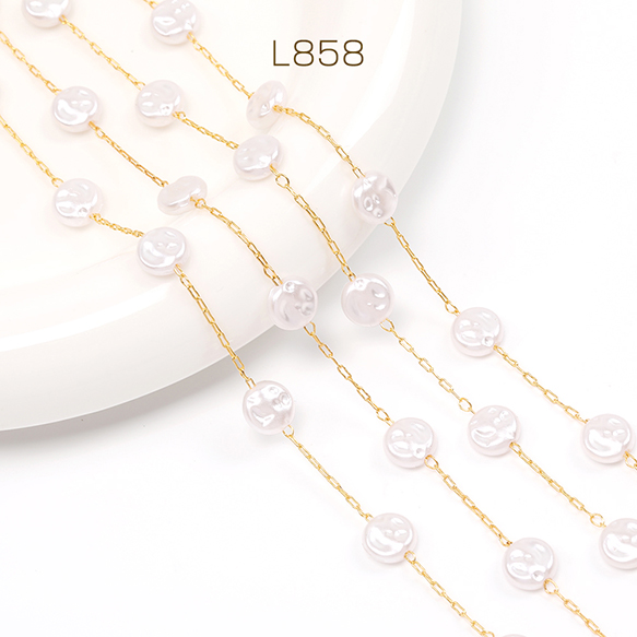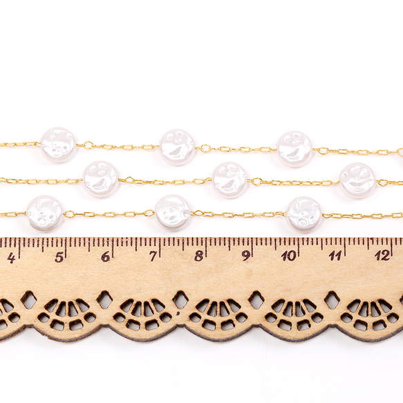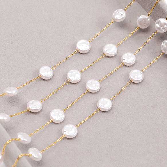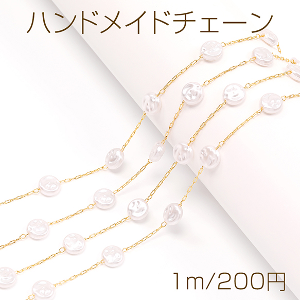 ハンドメイドチェーン 平丸パールビーズチェーン アクセサリーチェーン ネックレスチェーン (長さ1m)