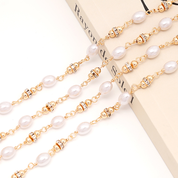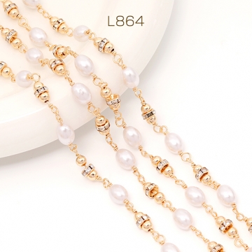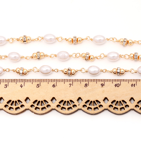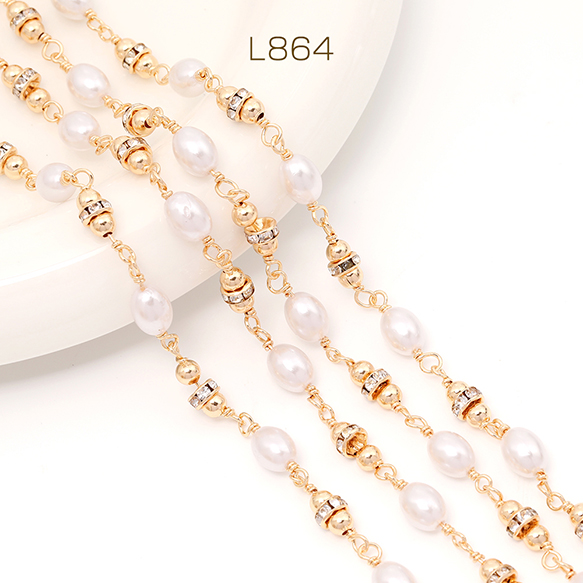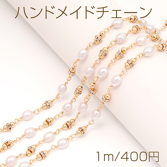 ハンドメイドチェーン ロンデルビーズ装飾 パールビーズチェーン アクセサリーチェーン ネックレスチェーン(長さ1m)
