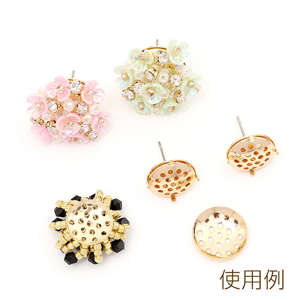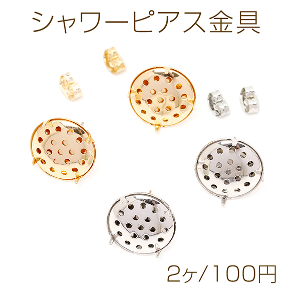 シャワーピアス金具 シャワー台付きピアスポスト ステンレス芯 シャワー直径15mm 1ペア