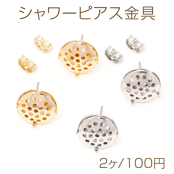 シャワーピアス金具 シャワー台付きピアスポスト ステンレス芯 シャワー直径13mm 1ペア