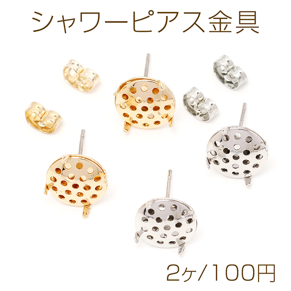 シャワーピアス金具 シャワー台付きピアスポスト ステンレス芯 シャワー直径10mm 1ペア
