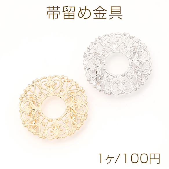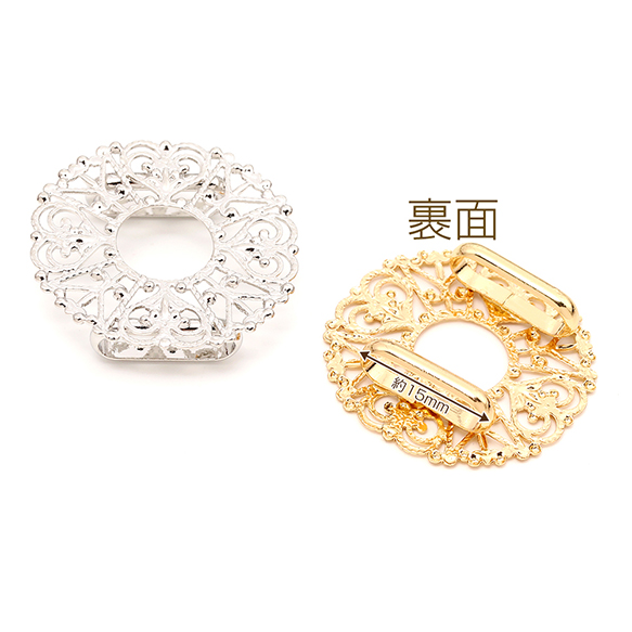 帯留め金具 ラウンド透かし台付き 縫付け 貼付け台座付き 直径31mm 1ヶ入り