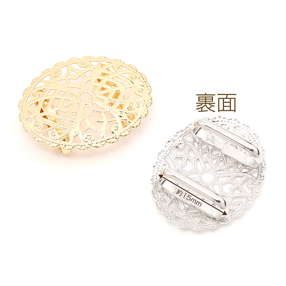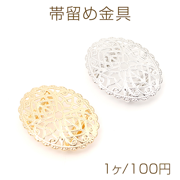 帯留め金具 オーバル型透かし台付き 縫付け 貼付け台座付き 23×30mm 1ヶ入り