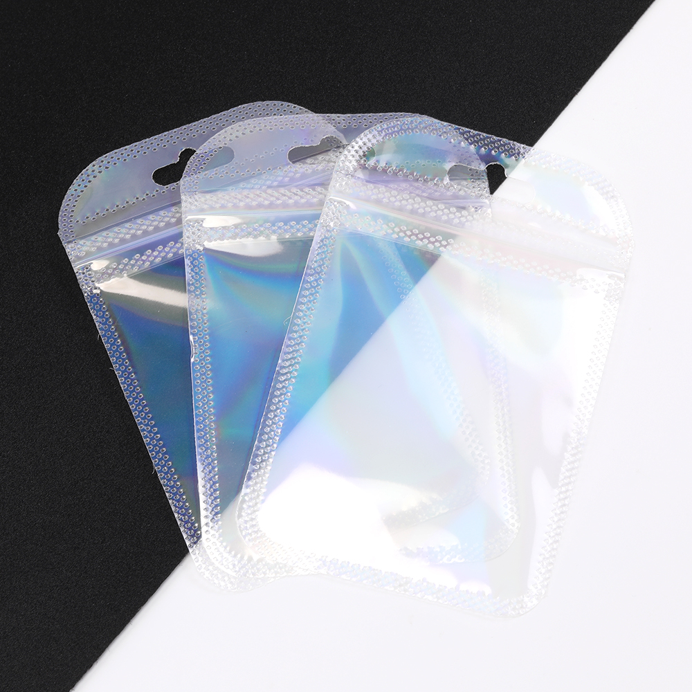 オーロラチャック袋 ラッピングポリ袋 ジュエリー袋 OPP袋 小物入れ袋 アクセサリー入れ ジプロック袋 穴あり ホワイト 20枚入り