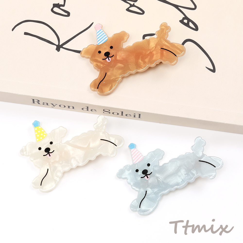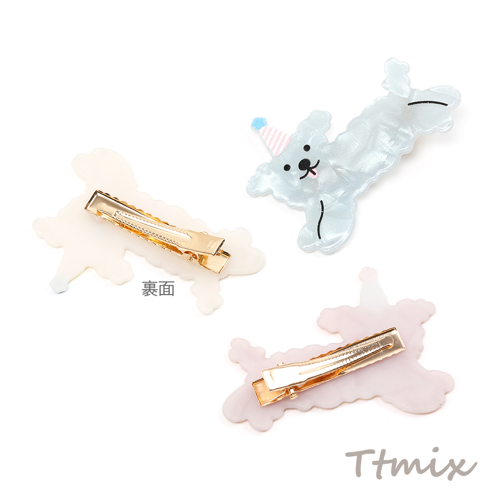 アニマルへアピン 犬 トイプードル アクリルへアピン キッズへアピン ヘアクリップ 4.2×5.9cm 2個セット