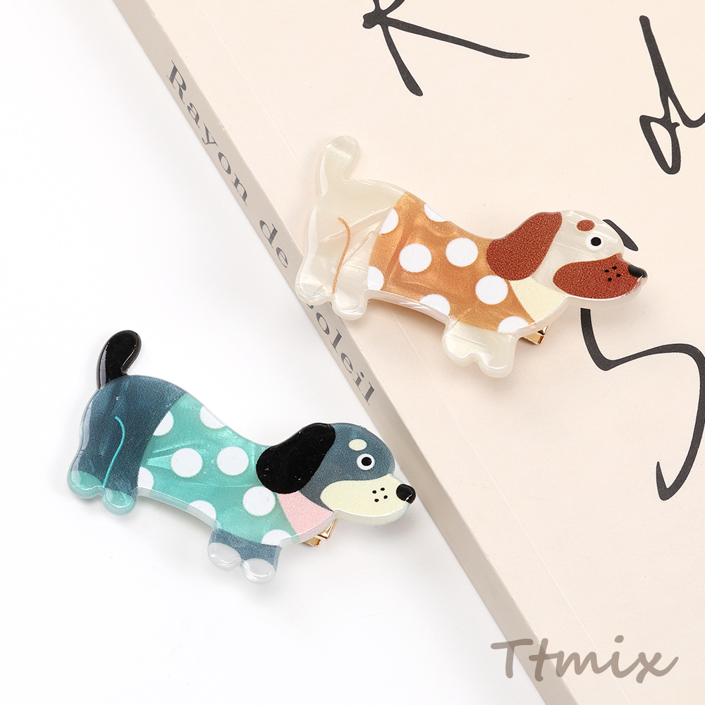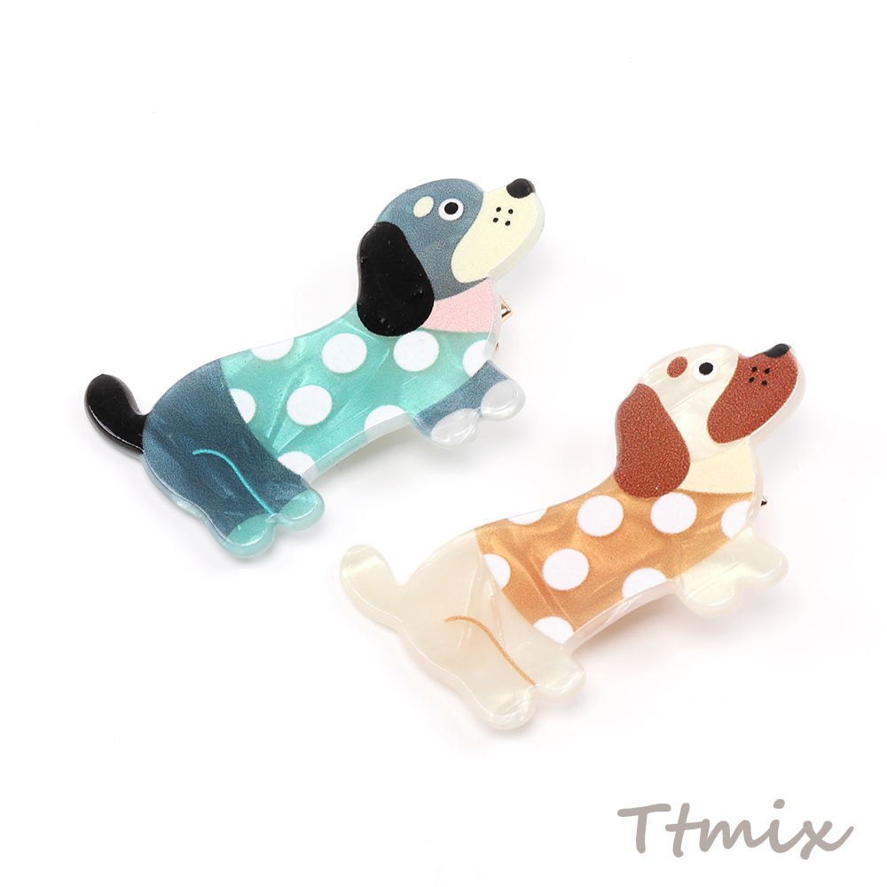 アニマルへアピン 犬 ビーグル アクリルへアピン キッズへアピン ヘアクリップ 3.2×5.7cm 2個セット