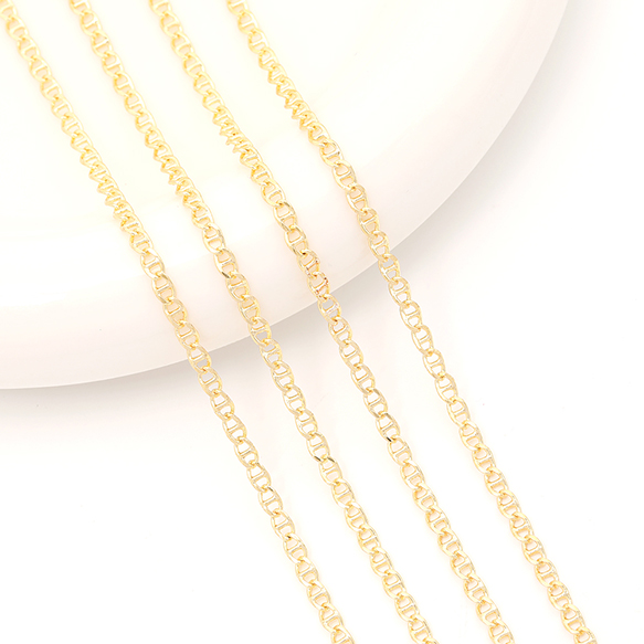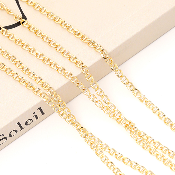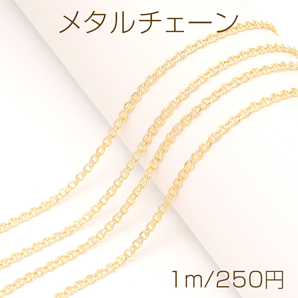 メタルチェーン アンカーチェーン ネックレスチェーン デザインチェーン アクセサリーチェーン 色落ちしにくい 銅製 18Kゴールドメッキ(長さ1m)