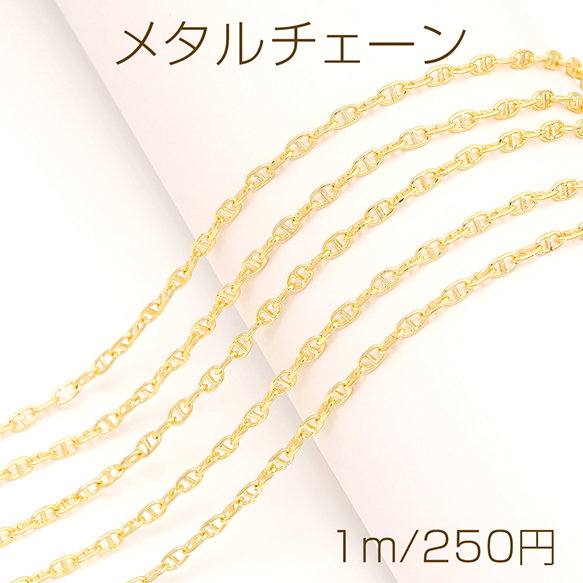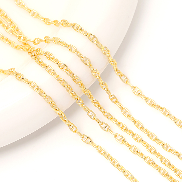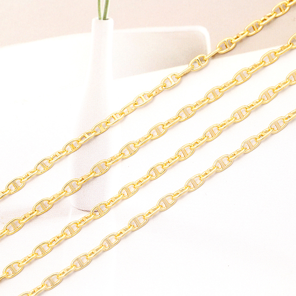メタルチェーン アンカーチェーン ネックレスチェーン アクセサリーチェーン 色落ちしにくい 銅製 18Kゴールドメッキ(長さ1m)